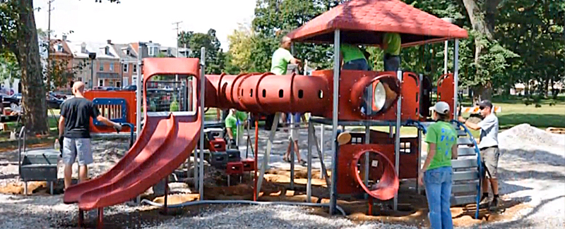 York’s West Penn Park received new equipment and renovations as part of a multi-phase plan to improve the park and offer new activities for city residents. A small army of 50 determined citizens and Department of Conservation and Natural Resources employees descended upon the park and installed a new playground unit designated for children 2-5 years old. They also spread mulch under the existing play equipment and cleaned up the park grounds.